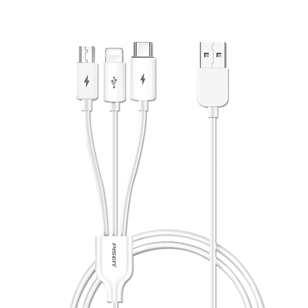 Cáp Pisen 3 đầu ra Lightning Type-C Micro 1.2m AP07-1200
