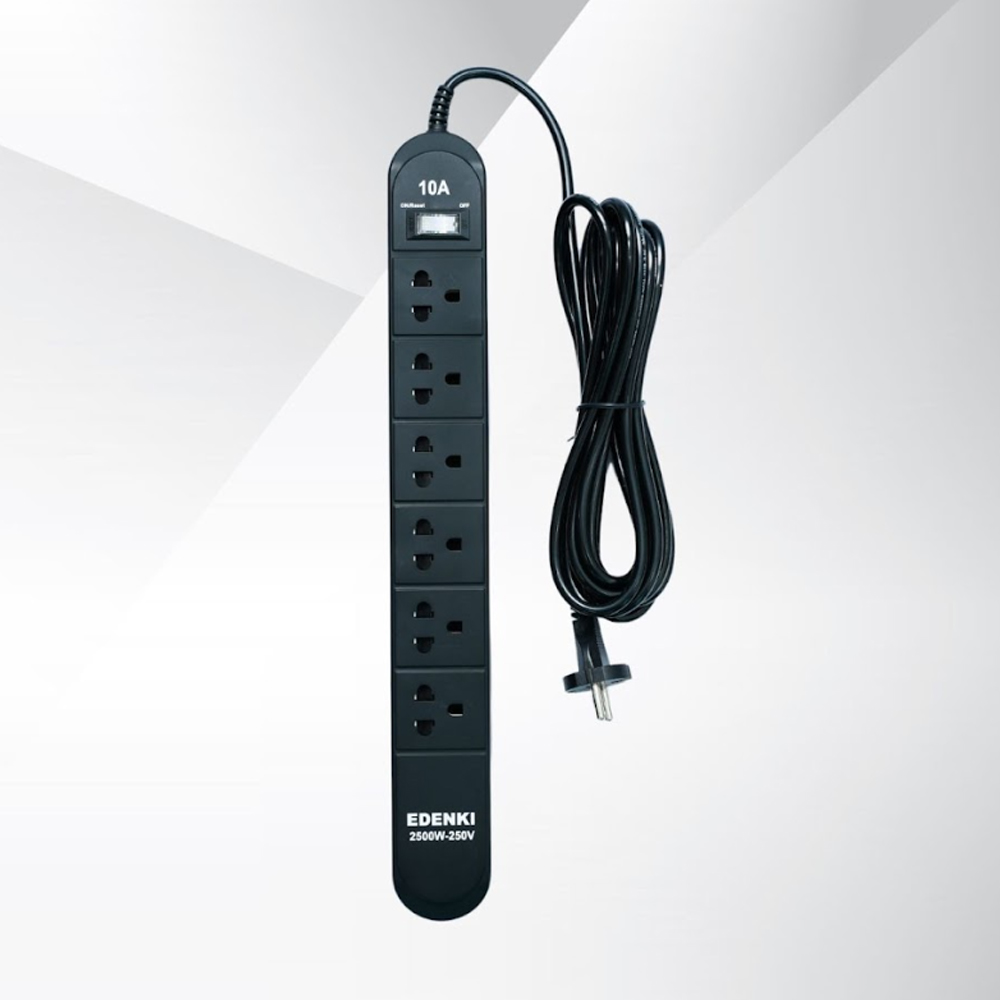 Ổ cắm điện Edenki ED-6C4B Black (6 Lỗ đa năng – 4M 10A)
